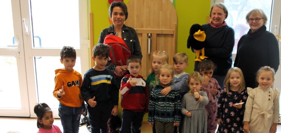 Die Kita-Kinder wählen schließlich ihr Lieblingsbuch und bereiten eine kleine Präsentation vor. Dies kann eine Bastelarbeit, eine Klanggeschichte oder auch ein Theaterstück sein – der Fantasie sind hier keine Grenzen gesetzt. Im Januar übergeben die Kinder die Rucksäcke in der frisch renovierten Bücherei an die nächsten Kitas und präsentieren ihren Favoriten in Form der vorbereiteten Darbietung.
