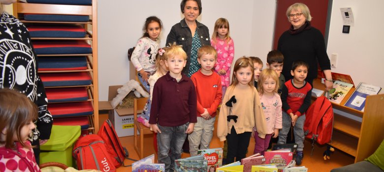 Die Kita-Kinder wählen schließlich ihr Lieblingsbuch und bereiten eine kleine Präsentation vor. Dies kann eine Bastelarbeit, eine Klanggeschichte oder auch ein Theaterstück sein – der Fantasie sind hier keine Grenzen gesetzt. Im Januar übergeben die Kinder die Rucksäcke in der frisch renovierten Bücherei an die nächsten Kitas und präsentieren ihren Favoriten in Form der vorbereiteten Darbietung.