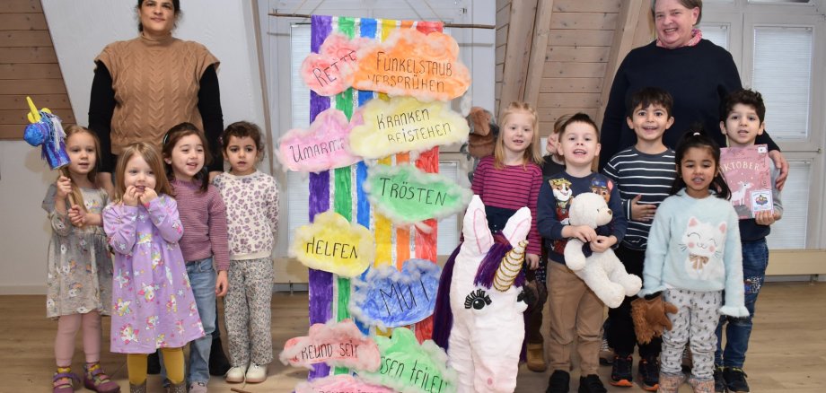 Beide Kita-Gruppen hatten sich unabhängig voneinander für das Bilderbuch „Ein Einhorn namens Oktober“ von Maria Höck und Juliana Kralik entschieden. Die Geschichte handelt von dem jungen Einhorn Oktober, das an seinem ersten Geburtstag seine Magie erhalten soll. Als diese scheinbar ausbleibt, begibt sich Oktober auf die Suche und erkennt schließlich, dass seine besondere Gabe schon immer in ihm steckt: seine Freundlichkeit.