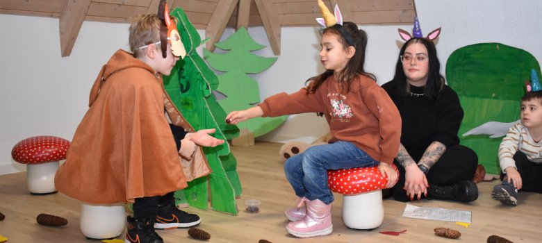 Bei der ersten Wanderraben-Präsentation verwandelte sich die neu gestaltete Kinderabteilung der Stadt- und Kreisergänzungsbücherei Wittlich in einen magischen Einhorn-Wald. Die Kinder aus den Kitas Wittlich-Bombogen und Wittlich-Jahnplatz waren zusammengekommen, um ihr Lieblingsbuch der aktuellen Wanderraben-Runde zu präsentieren.