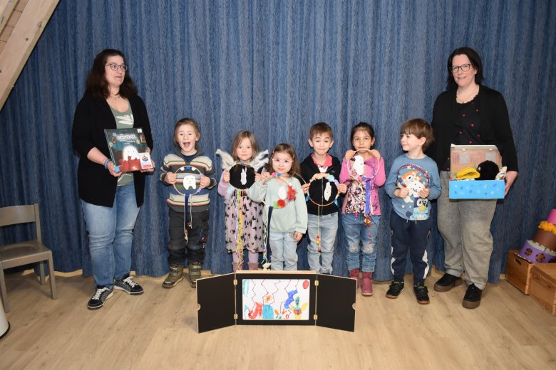 Die Kinder aus Plein hingegen setzten auf eine ruhige, kreative Umsetzung. Inspiriert von der Geschichte eines Gespenstes, das sich vor nächtlichen Geräuschen fürchtet und deshalb nicht schlafen kann, gestalteten sie kunstvolle Traumfänger. Darüber hinaus präsentierten sie im Kamishibai-Bildtheater eigene Ängste, die sie in ausdrucksstarken Bildern festhielten.